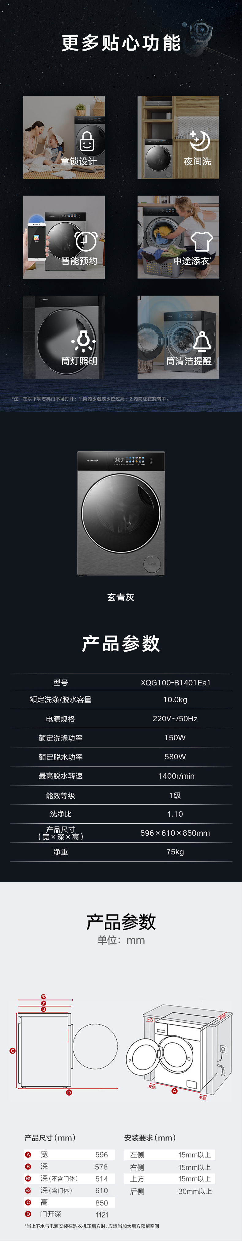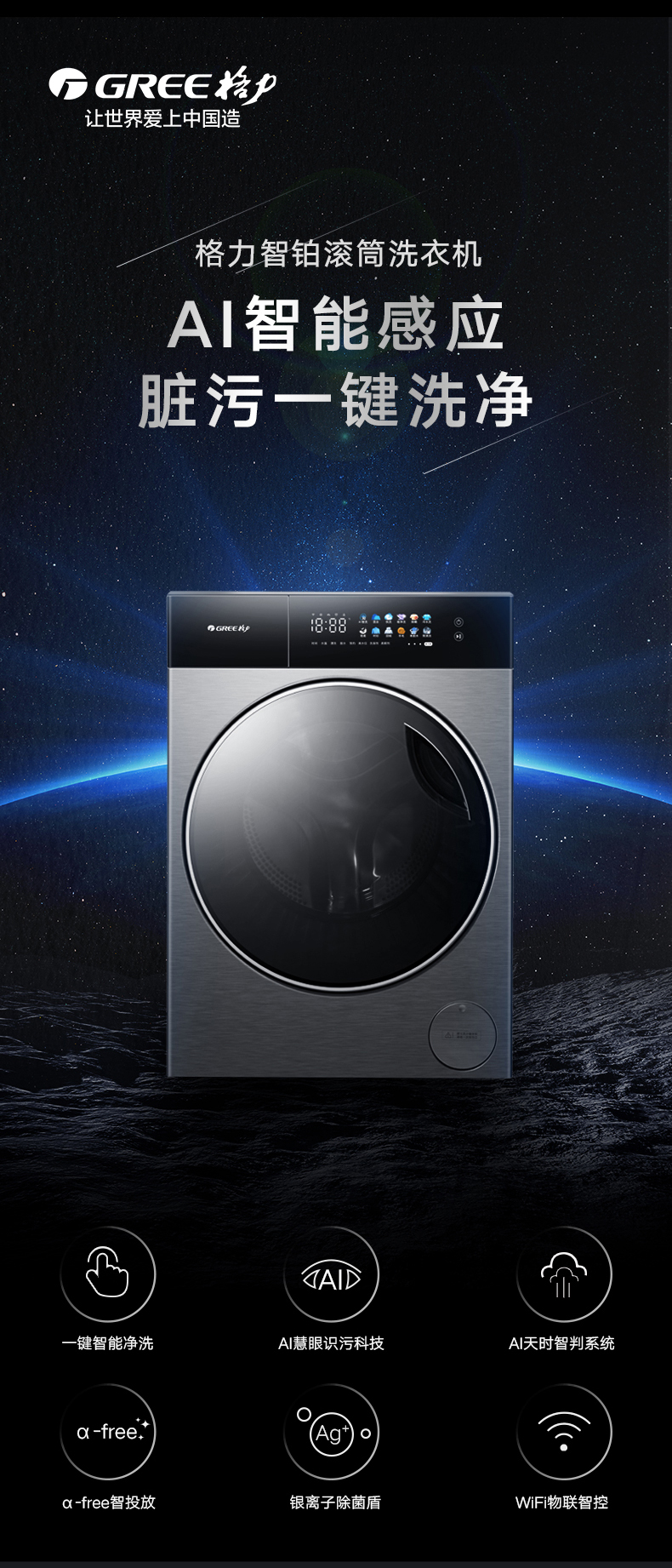 AI智能感應(yīng),臟污一鍵洗凈。AI慧眼識(shí)污,智能判斷洗滌凈度,洗凈比高達(dá)1.1