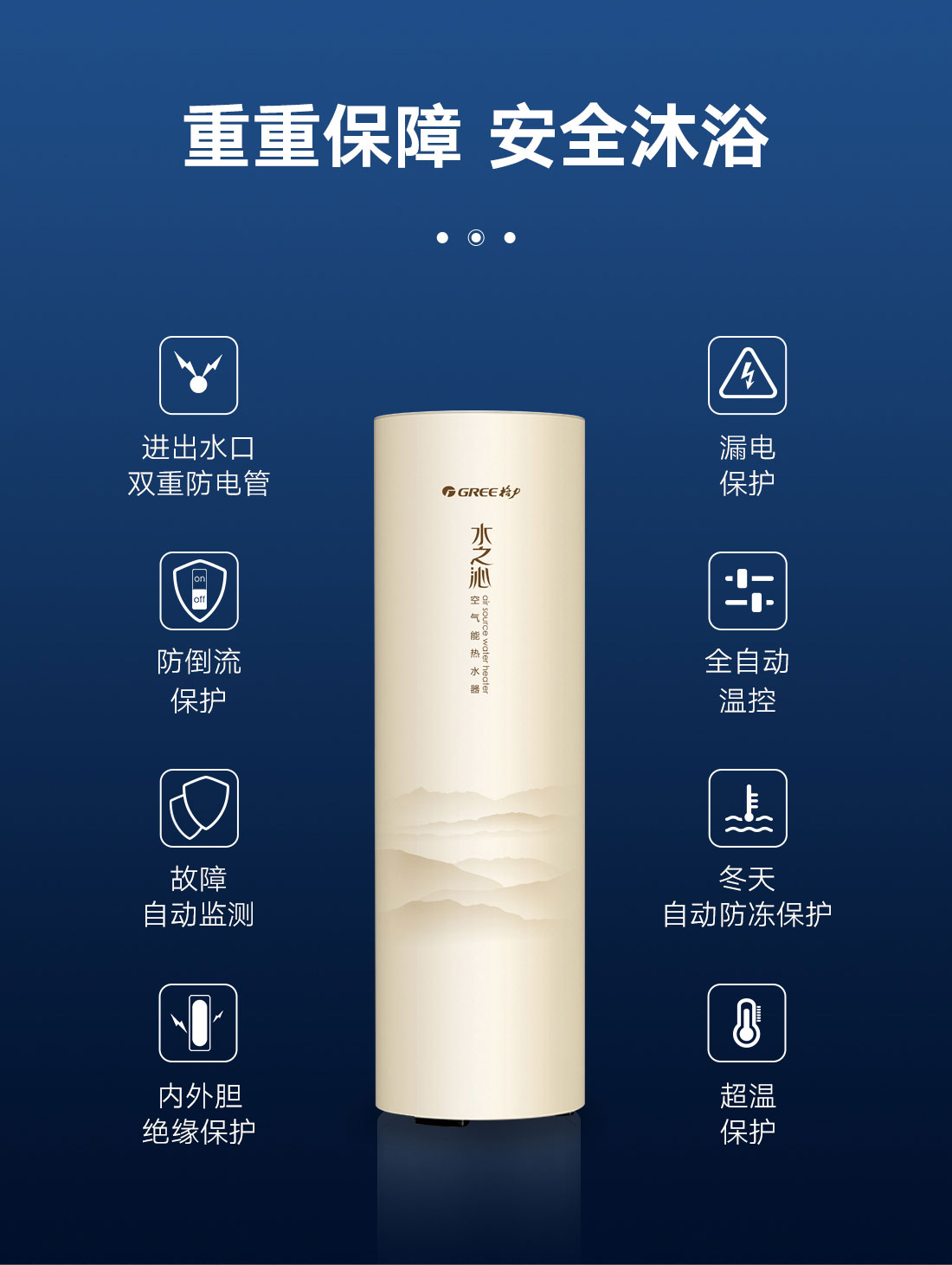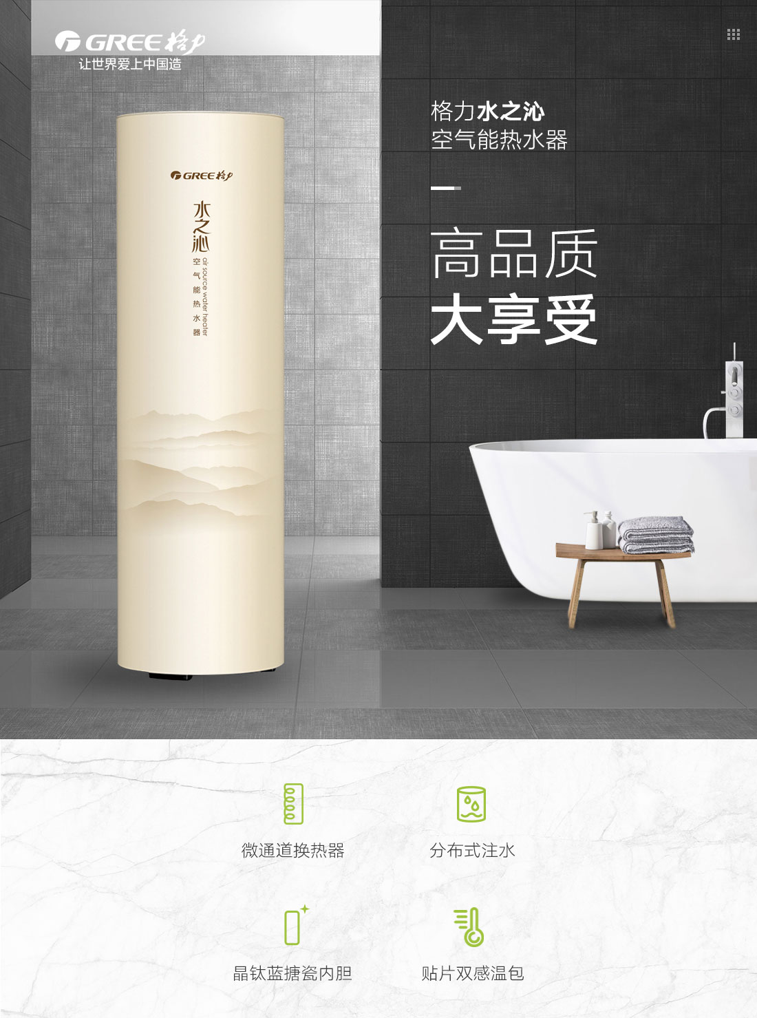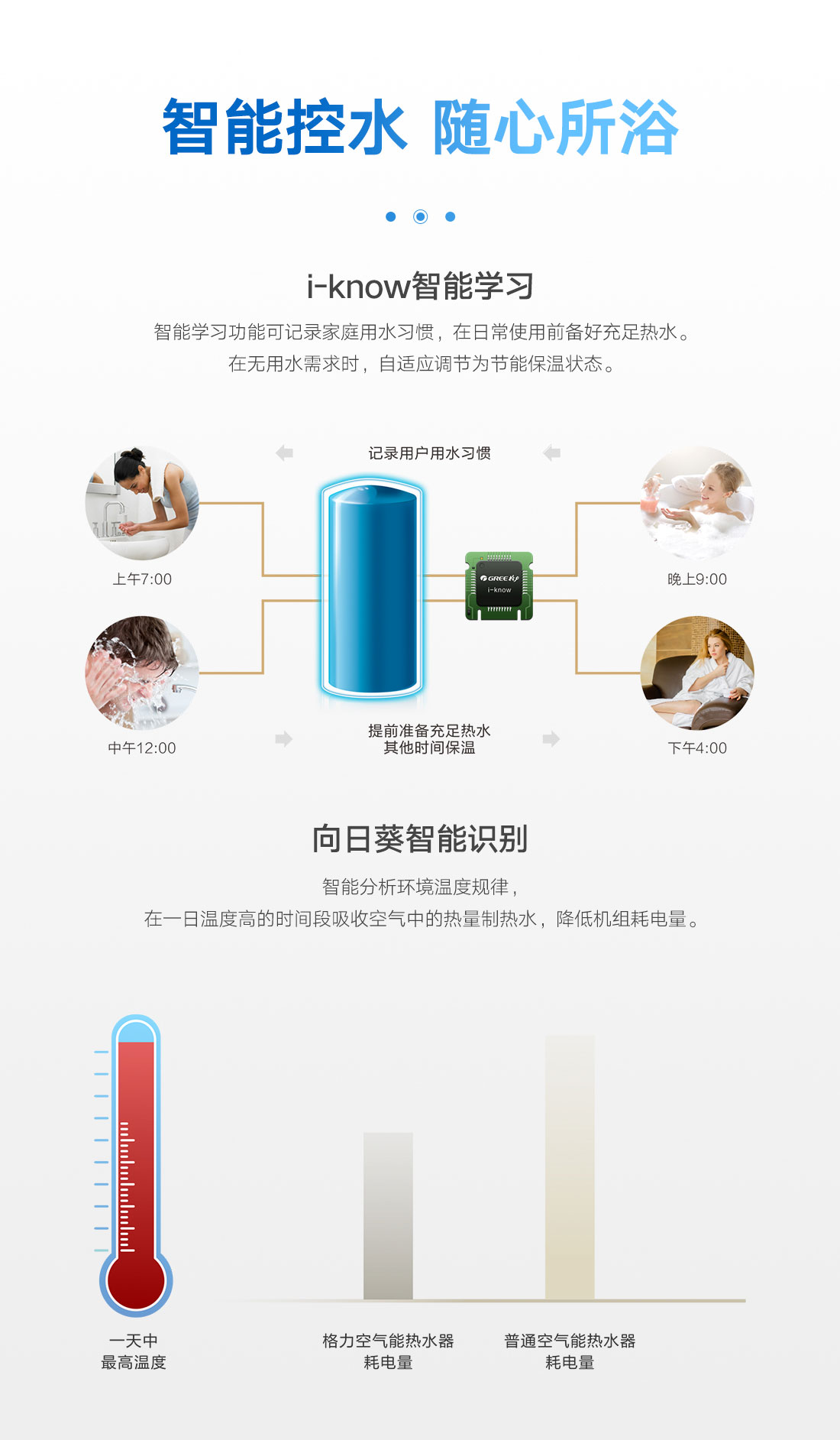 新型環保冷媒,綠色節能更高效,內置增容、向日葵、i-know等個性化功能;給您的沐浴帶來多樣化體驗